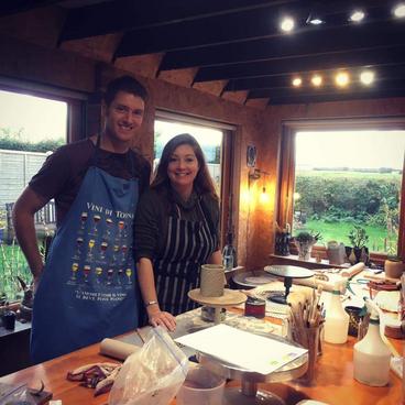 Emmanuelle and Andrew celebrate their 9th wedding anniversary which is pottery by joining a workshop.